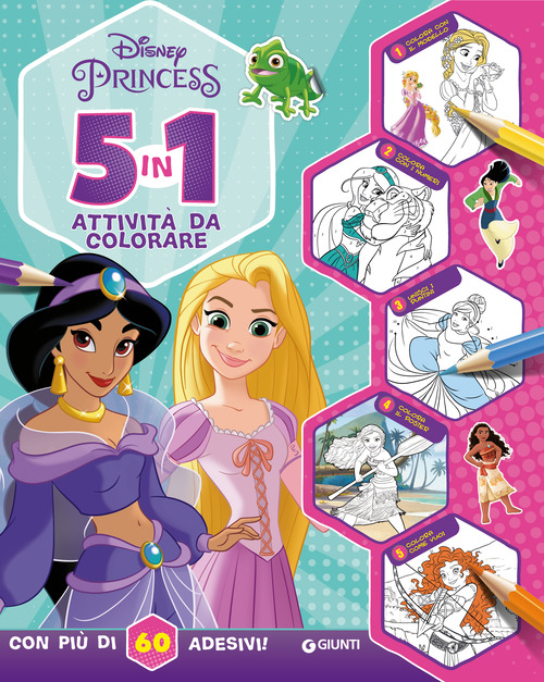 Un nuovo albo attivo da colorare, dedicato al mondo delle Principesse Disney, pieno di disegni con diverse tipologie di difficoltà: alcuni sono più semplici, altri più strutturati. Si può colorare copiando il modello, ideale per sviluppare la coordinazione occhio-mano e la capacità di osservazione; colorare seguendo i numeri, per introdurre i bambini ai concetti di numeri e sequenze; colorare unendo i puntini, per favorire la concentrazione e l'apprendimento della successione logica; colorare i poster, per decorare la cameretta con i disegni; colorare a piacimento, per stimolare la fantasia dei bambini. Età di lettura: da 5 anni.