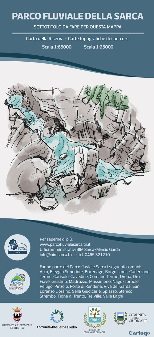 Parco fluviale della Sarca. Carta illustrata della riserva. Carte topografiche dei percorsi