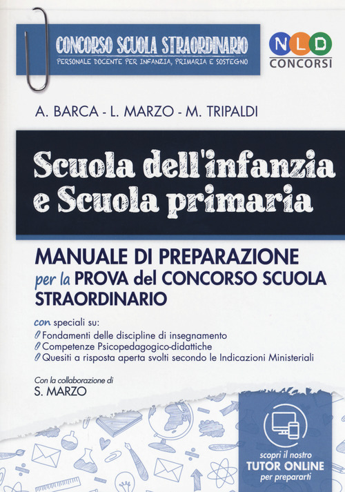 Una compiuta fusione di conoscenze, abilità e competenze è quello che si chiede oggi alla nuova generazione di docenti che si preparano ad affrontare il nuovo Concorso a cattedra, anche alla luce dei contenuti della L. n. 107/2015, che ha riformato il sistema nazionale di istruzione e formazione: non è, dunque, solo una questione di contenuti, ma si lavora affinché il reclutamento sia capace di individuare, prima di ogni altra caratteristica, sia un'autentica attitudine all'insegnamento che le competenze socio-psico-pedagogicoddattiche essenziali a rimuovere gli eventuali ostacoli che possono minare il sereno evolversi del percorso formativo di ciascun alunno. Alla luce di queste premesse, questo volume, dedicato alla Scuola dell'infanzia e alla Scuola primaria, ha l'ambizione di proporsi come uno strumento per la preparazione al concorso completo, essenziale e versatile offrendo una panoramica completa sugli elementi costituivi della professione e della professionalità del docente. A tal fine, vengono forniti materiali analitici, corredati da mappe, grafici, e approfondimenti bibliografici nonché approfondimenti legislativi/normativi che seguono le indicazioni del bando ufficiale (pubblicato in GU n. 89 del 09/11/2018). Si è inoltre prestata attenzione alla necessaria sintesi che un quadro così vasto, quale le dinamiche di insegnamento/apprendimento nella formazione primaria, richiede. II volume presenta una struttura tripartita. Area I: i Fondamenti della disciplina di insegnamento, in cui i contenuti, scelti e compendiati in ottemperanza all'intero programma d'esame con cui gli aspiranti docenti dovranno confrontarsi, permettono al fruitore del testo di acquisire un ampio bagaglio di conoscenze psicologiche, normative e disciplinari; area II: Competenze pedagogico-didattiche, arricchite da analisi dottrinali e spunti problematici presentati in modo critico e didatticamente efficace, con capitoli di approfondimento sulla didattica e sulle più innovative metodologie dell'inclusione (con particolare attenzione ai BES e ai DSA); area III: quesiti a risposta aperta, inerenti la trattazione articolata di tematiche disciplinari, didattiche e metodologiche e mirati all'accertamento delle conoscenze e delle competenze in relazione alle discipline oggetto di insegnamento, secondo le indicazioni ministeriali. Questa nuova edizione del presente volume, che ambisce a proporsi come uno strumento esaustivo, versatile e costruttivo per la preparazione al concorso, oltre ai contenuti teorici, imprescindibili nella formazione del docente, raccoglie numerosi contributi psicologici, didattici e metodologici di taglio pratico-operativo. Il lavoro di revisione ha inteso consolidare ed arricchire il complesso di conoscenze e competenze teoriche e pratiche, includendo sia esperienze formative, progettuali e laboratoriali realizzate da educatori ed insegnanti sia rimandi a link e letture di approfondimenti tematici. Lo scopo del presente volume è, dunque, quello di essere in linea con le richieste normative di continuo e costante aggiornamento della professione del docente. Inoltre, con il nostro Tutor on line potrai effettuare approfondimenti e verificare la tua preparazione misurandoti con le domande a risposta aperta, come previsto dal bando di concorso, scaricabili online con la password reperibile nell'ultima pagina del volume.