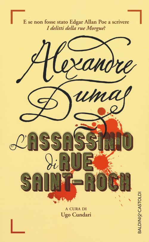 "L'assassinio di rue Saint-Roch", che ricalca con poche differenze il celebre "I delitti della rue Morgue" di Edgar Allan Poe, è stato ritrovato per caso da Ugo Cundari nell'archivio di una biblioteca napoletana. Pare incredibile, ma dell'esistenza dello scritto, presente in poche copie originali nel mondo, non si è mai discusso seriamente. Eppure questo piccolo gioiello pubblicato dal grande autore francese su "L'Indipendente", il giornale partenopeo di cui fu direttore tra il 1860 e il 1864, potrebbe aprire un caso letterario, e certo suscita numerosi interrogativi: è stato davvero Edgar Allan Poe a scrivere il primo giallo della storia della letteratura? È stato Dumas a ispirarglielo? Prima di pubblicarlo in italiano, Dumas lo aveva già dato alle stampe in francese? Se sì, in che anno? Davvero, allora, il geniale scrittore americano ha soggiornato a Parigi come vuole una voce mai confermata? È una coincidenza che nel suo racconto il medico legale si chiami Paul Dumas e in quello di Dumas prenda il nome di Paul Dupin? Qual è la soluzione del mistero?