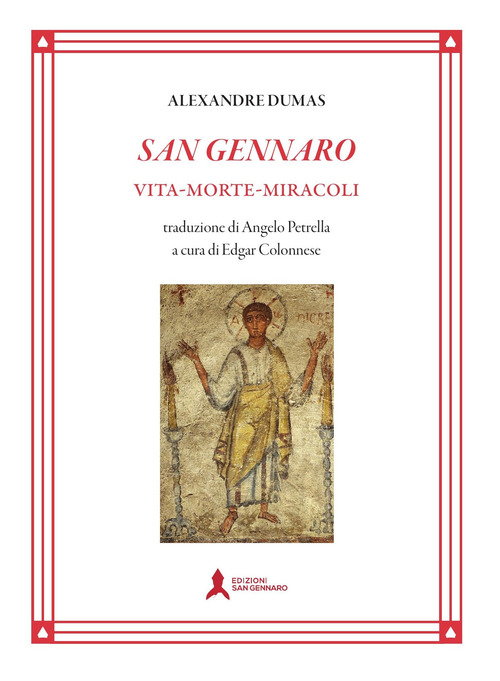«La storia di san Gennaro ha inizio con la storia di Napoli e non finirà, secondo ogni probabilità, che con questa: entrambe procedono parallele e, a ogni grande avvenimento felice o infelice, si toccano e si confondono. All'inizio ci si può sbagliare sulle cause e gli effetti di questi avvenimenti e attribuirli, sulla scia di storici ignoranti o prevenuti, a questa o quella circostanza di cui essi vanno cercando molto l'origine; ma, approfondito l'argomento, si vedrà che dall'inizio del quarto secolo fino ai nostri giorni, san Gennaro è il principio o la fine di ogni cosa, tanto che nessun cambiamento si è verificato senza il permesso, l'ordine e l'intervento del suo potente protettore». Da Le Corricolo pubblicato la prima volta nel 1843, abbiamo tratto i quattro capitoli dedicati al patrono di Napoli. Angelo Petrella, che ne ha curato la traduzione, ha provveduto a riattualizzarla e ripulirla dalle infiocchettature barocche spesso utilizzate nelle precedenti traduzioni, che non rendevano merito alla scorrevole, meravigliata e spesso ironica prosa di Alexandre Dumas.