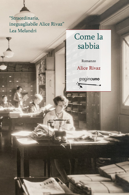 Questo secondo romanzo di Alice Rivaz, apparso nel 1946, ci invita a seguire, durante una manciata di giorni e notti dell'inverno del 1928, l'esistenza di alcuni funzionari che lavorano in un organismo internazionale a Ginevra. Le scelte private, le aspettative tradite, le passioni brucianti dei protagonisti, in special modo di Hélène Blum e André Chateney, costituiscono un palcoscenico illuminato dietro il quale si muove, implacabile e sinistra, la Storia. Cieca e sorda alle istanze collettive che pure passano tra le sue mani, sotto forma di relazioni su scioperi e proteste in gran parte dell'Europa, una collettività privilegiata, al riparo dalla "disgrazia che bussa alle porte dei loro vicini", come scriverà Rivaz nel 1966, desidera la propria felicità in termini individuali, come se il mondo al di fuori dell'ufficio e delle relazioni private non fosse che un'entità astratta. In "Come la sabbia" si può notare l'avvio di quella tematica delle rivendicazioni femminili cui l'autrice rimarrà fedele e che si accentuerà l'anno dopo in "La pace degli alveari" (Paginauno, 2019), prima di diventare il soggetto principale delle scrittrici femministe degli anni Settanta.