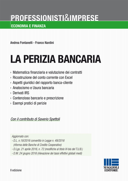 Il manuale si configura come strumento operativo per l'elaborazione di perizie econometriche sui rapporti bancari. La prima parte del volume è dedicata agli aspetti matematici-finanziari derivanti dalla rappresentazione del reale, come interpretata dalla posizione giuridica adottata dalla Suprema Corte di Cassazione. Di taglio pratico, la trattazione fornisce inoltre indicazioni sul migliore utilizzo degli strumenti informatici per le rilevazioni da effettuare nel corso delle perizie. La seconda parte esamina invece gli aspetti giuridici del rapporto tra banche e clienti, evidenziandone i profili a maggior rischio di contenzioso. Completato da esempi di perizia svolta - in particolare sui conti correnti bancari e sul leasing - il testo dedica una sezione ai casi pratici dell'attività del perito in questi ambiti: dai primi passi da compiere, fino all'esame delle situazioni più complesse, con il supporto della documentazione bancaria e contabile dei casi proposti. Questa seconda edizione è aggiornata con: il D.L. 14 febbraio 2016, n.18 convertito dalla Legge 8 aprile 2016, n. 49 (riforma delle BCC), che ha reintrodotto l'anatocismo, anche se su base annuale e non trimestrale; il D.Lgs. 21 aprile 2016, n. 72, che ha previsto modifiche e integrazioni del titolo VI-bis del T.U.B.; il D.M. 24 giugno 2016 (rilevazione dei tassi effettivi globali medi, ai sensi della legge sull'usura).
