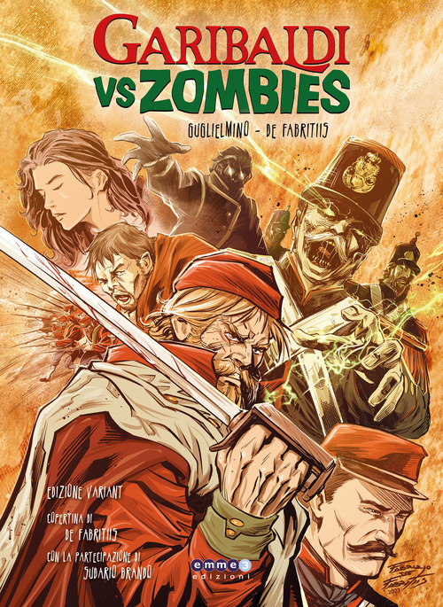 GARIBALDI VS ZOMBIES" EDIZIONE VARIANT COVER -TIRATURA LIMITATA Solo 200 copie numerate. Giuseppe Garibaldi, L'Eroe dei Due Mondi, in una nuova versione supereroistica è il protagonista di un graphic novel decisamente fuori di testa! Dopo la sanguinosa battaglia di Calatafimi, i garibaldini vengono attaccati da orde di mostruosi e famelici zombies elettrici e da qui inizia una serie di eventi che porteranno il nostro Giuseppe Garibaldi e il fedele Nino Bixio, a dover affrontare pericoli e minacce ben più pericolose incredibili... Andrea Guglielmino (storia) e Fabrizio De Fabritiis, aka Fumettista Esplosivo. (disegni,colori e copertina) ci portano a riscoprire la figura del famoso condottiero italiano Giuseppe Garibaldi in una nuova versione "supereroistica" e tamarrissima. Famoso per il coraggio, ma anche per il carattere coriaceo, ciò che ha contribuito ad alimentarne la leggenda di uomo invincibile, l'Eroe dei Due Mondi combatterà ora contro orde di nemici, zombies elettrici e tanto altro...