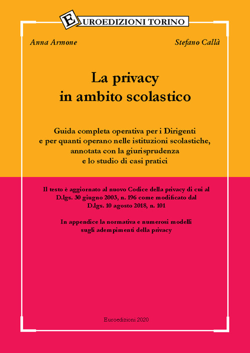 La privacy in ambito scolastico. Guida completa operativa per i dirigenti e per quanti operano nelle istituzioni scolastiche, annotata con la giurisprudenza e lo studio di casi pratici