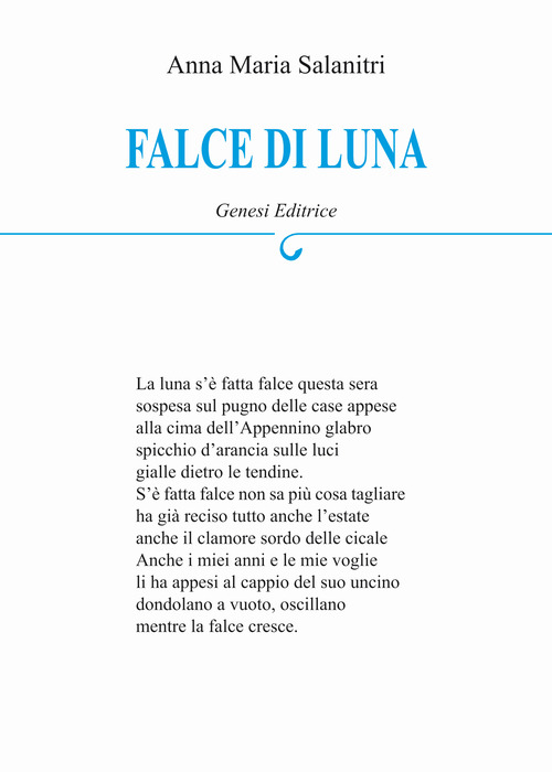 La poesia di Anna Maria Salanitri, così nitida, tersa e confessionale, è un esempio di apertura dell'anima fino nei precordi più profondi, compiuto con la dolcezza di chi si arrende alle leggi di effimera durata della vita, ma continua a coltivare nell'anima la fede di raggiungere nell'oltre vita la rinascita in una dimensione esplicativa dei misteri che gelosamente il cosmo custodisce nella sua sconfinata essenza priva di limiti e di confini intelligibili. Anna Maria Salanitri, nello scrivere le forme e i modi dello sconforto per la brevità della vita, il tempo che passa e ci cambia, in realtà nutre l'anima alla fede di un approdo metafisico che sappia colmare ogni arsura e ogni sete di conoscenza e di durata.