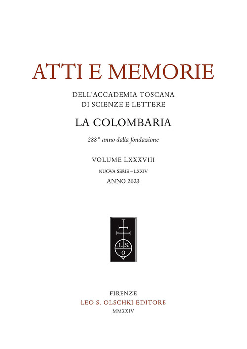 Nota del Presidente. ~ Sandro Rogari, Inaugurazione dell'anno accademico 2023-2024. ~ Luca Fonnesu, Pace e sfera pubblica in Kant. ~ Premessa. di Francesco Stella ~ Pierluigi Licciardello, Le scuole monastiche in Casentino (secoli XI-XIV). ~ Simone Allegria, Teoria e prassi dell'attività notarile nel Casentino aretino del XII secolo: il caso di «Albertus notarius». ~ Enrico Faini, Dante e i Guidi di Romena. Riflessioni a partire dall'epistola II. ~ Elisabetta Bartoli, Bernardo e Guido, maestri dettatori in Casentino (XII secolo). ~ Gian Carlo Alessio, Ancora su Bonfiglio d'Arezzo. ~ Marco Petoletti, Bonaiuto da Casentino. ~ Francesca Gensini, Applicazioni cliniche della scoperta del DNA. ~ Elena Mazzini, Dalle leggi di Norimberga alla Shoah. ~ Ernestina Pellegrini, Dietro le quinte del germanista. ~ Matilde Oliva, Le fonti retoriche e filosofiche delle Partitiones oratoriae di Cicerone. ~ Noemi Pigini, Le forme della predicazione tardo medievale: dal sermone moderno al sermone cateriniano. ~ Andrea Ranfagni, Quantum motion of levitated nonosphere on the plane. ~ Luigimaria Riccardi, L'Unione Europea e la NATO. ~ Matteo Zupancic, Speculum mundi: realismo linguistico e nominalismo nella metafora del linguaggio-specchio ~ Rendiconto dell'attività accademica. ~ Cariche della società. ~ Giovanni Piccardi, un Chimico di raffinata gentilezza. di Mariagrazie Costa, Luca Piccardi, Roberto Udisti, Silvia Becagli e Marco Fontani