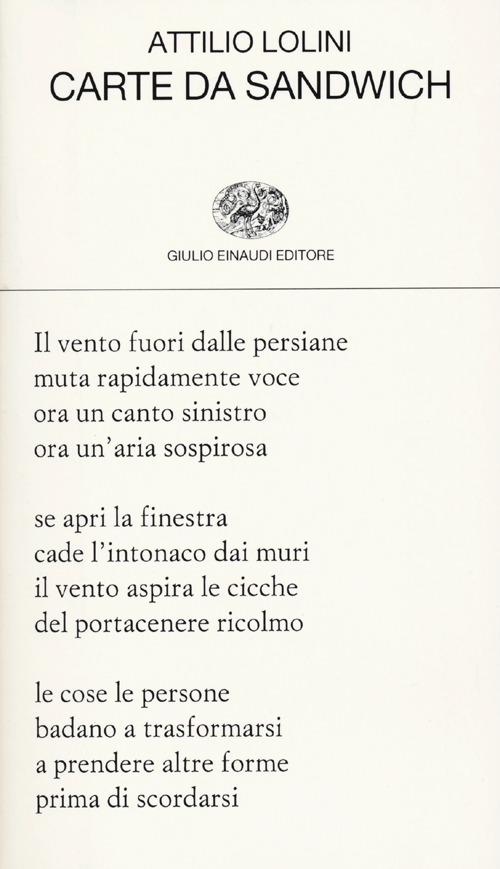 "Carte da sandwich" è una raccolta caratterizzata da uno sguardo ironico e disperato, non più aggressivo né distruttivo come nei versi precedenti, ma piuttosto disincantato. Uno sguardo che riesce a captare con leggerezza e precisione il processo di disfacimento delle cose, dei pensieri e dei sentimenti degli uomini. Rimasto a lungo fuori dalle vetrine letterarie più illuminate, Lolini conferma di essere uno dei pochi poeti italiani in grado di mescolare nel profondo, in uno "stile semplice", il tragico e il comico, regalando lampi agghiaccianti di conoscenza e di comprensione della vita.