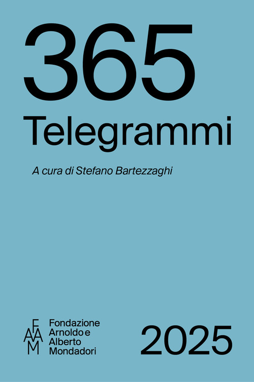«365», piccoli annuari scanditi dai documenti conservati in Fondazione Arnoldo e Alberto Mondadori, mostrati e raccontati a lettrici e lettori pagina dopo pagina, di settimana in settimana, uno al giorno per 365 giorni. Un assaggio quotidiano del patrimonio archivistico e bibliografico di FAAM. Uno sguardo privilegiato sulla storia dell'editoria italiana del Novecento. Il 2025 è dedicato ai telegrammi.