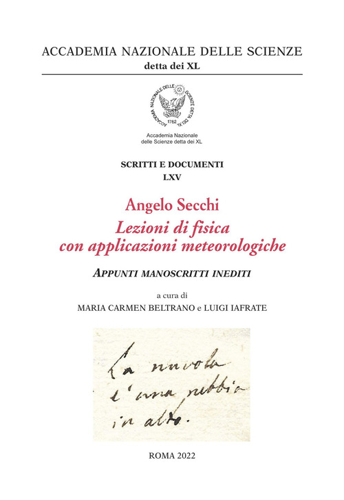 Angelo Secchi. Lezioni di fisica con applicazioni meteorologiche. Appunti manoscritti inediti