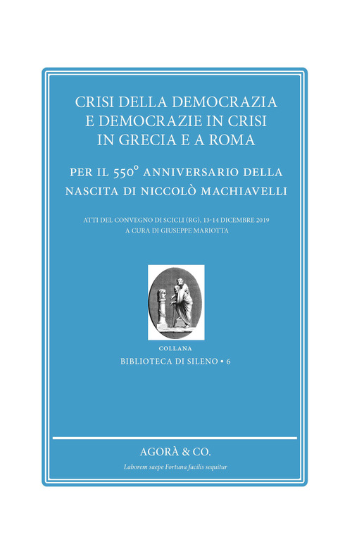 Nel 550° anniversario della nascita di Niccolò Machiavelli, Giuseppe Mariotta ha organizzato un incontro di antichisti. L'antichità classica, infatti, è punto di riferimento costante e imprescindibile della visione storica e politica dell'autore rinascimentale. Se enorme è il debito della cultura moderna nei confronti del Segretario fiorentino, altrettanto rilevante è il debito di quest'ultimo nei confronti degli scrittori latini e greci, senza l'apporto dei quali certamente non avrebbero mai visto la luce i suoi capolavori. Considerando la peculiare connessione che Machiavelli stabilisce tra lotte civili, idea di libertà e istituzioni repubblicane, si è pensato di discutere della crisi della democrazia nel mondo antico, tematica attuale che invita a ripensare il presente, meditando sugli squilibri, le difficoltà e le tensioni che pervadono le democrazie odierne. Nel volume si riportano i contributi di Giorgio Bonamente, Umberto Bultrighini, Elisabetta Dimauro, Augusto Guida, Salvo Micciché, Rosalba Panvini, Giovanni Salanitro, Anna Maria Seminara, Mario Tropea. Giuseppe Mariotta ha scritto la Prefazione.