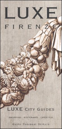Luxe Firenze è una guida con aggi ornami enti gratuiti online, servizio di prenotazione Luxe hotel & Villa Collection e le guide in inglese scaricabili su smartphone dal sito www.luxecityguides.com. Volete la migliore cucina toscana, da quella della mamma fino al ristoranti Michelin? Volete il vostro guru personale per shopping, arte e visite private? Volete i migliori mosaicisti, antiquari, mobilieri e orefici della città? Volete lasciarvi la folla alle spalle e scoprire stradine e meraviglie nascoste? Volete arrivare in grande stile, a bordo di un'autovettura d'epoca? Volete i migliori artigiani, per tessuti, gioielli, scarpe e vestiti su misura? Volete trovare i migliori ristoranti, bar, negozi, Spa e servizi, ed evitare il resto? Bene, ora potete. Che abbiate qualche ora o qualche giorno, Luxe è quello che vi serve. sintetica, senza peli sulla lingua e piena zeppa di informazioni preziose, è un distillato dei luoghi preferiti del nostro autore che vive sul posto e di oltre venti collaboratori residenti scelti per la loro passione, lo stile, le conoscenze e l'esperienza. Itinerari unici per arrivare dritti al meglio evitando il peggio! Luoghi nascosti per rilassarsi e i locali più alla moda per mangiare, bere e ballare, i negozi che da soli non trovereste mai, Spa & co. di classe per viziarvi da capo a piedi. La guida è un pieghevole che si apre a fisarmonica.