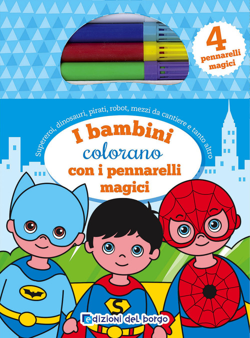 Il libro comprende un kit speciale con quattro pennarelli magici e un album da colorare raggruppati su un'unica base, il tutto facilmente trasportabile grazie a una pratica maniglia di plastica. I bambini si divertiranno a utilizzare il pennarello bianco che, se passato sul tratto di uno degli altri pennarelli, farà comparire un nuovo colore (quello indicato sul tappo). Interni con modello colorato sulla pagina di sinistra e sagoma da colorare sulla pagina di destra. Età di lettura: da 3 anni.