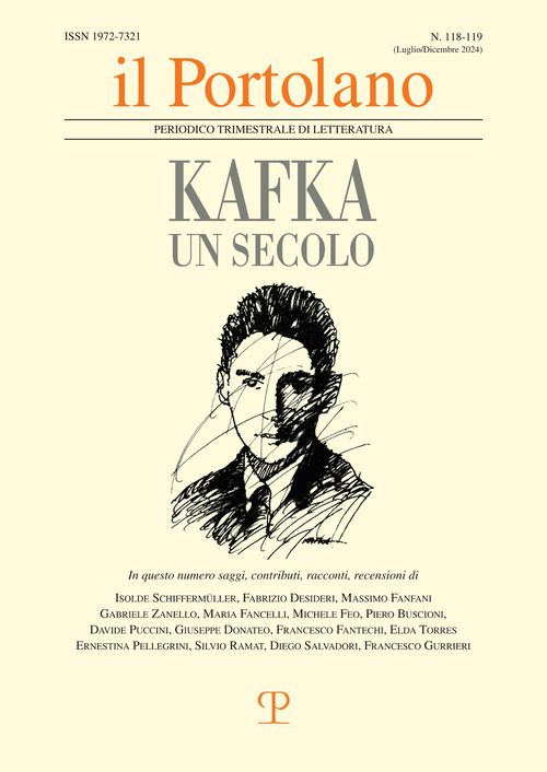 Editoriale (f.g.) Isolde Schiffermüller, Kafka contemporaneo Fabrizio Desideri, «Idea di un mistero»: Benjamin, Scholem e il nodo "Kafka" Massimo Fanfani, Franz Kafka ed Enrico Rocca: ebrei «cercatori di Dio» Gabriele Zanello, Franz Kafka tradotto da Ervino Pocar Maria Fancelli, Metamorfosi o mutazione? Una nuova traduzione de La metamorfosi di Franz Kafka Massimo Fanfani, L'italiano di Kafka Michele Feo, Ricordo di Mario Caciagli Davide Puccini, La Biblioteca universale Giuseppe Donateo, La poetessa lodata da Alfieri Fortunata Sulgher Fantastici, l'improvvisazione come arte Francesco Fantechi, Fare poesia sociale a Firenze negli anni Ottanta e Novanta del Novecento Davide Puccini, Con parole remote. Le origini della poesia di Pontiggia Elda Torres, L'ossimoro inestricabile Ernestina Pellegrini, Un giorno di Monica Sarsini Massimo Fanfani, Il falco e la colomba di Puccini Diego Salvadori, «Tutto perenne nel palpito della luce». Profezia dell'Essere di Renzo Ricchi Maria Fancelli, Droni sopra Berlino
