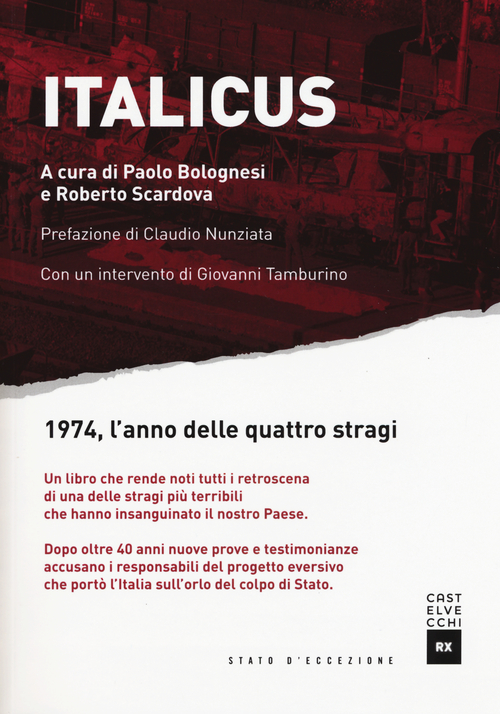 Troppe cose ancora rimaste in sospeso: enigmi, fatti negati, nessun colpevole. Un testimone mai ascoltato conferma che il gruppo neofascista toscano guidato da Mario Tufi e Augusto Cauchi - finanziato da Licio Gelii - partecipò all'attentato al treno Italicus (12 morti, 80 feriti). Dai documenti emerge come da Piazza Fontana in poi le organizzazioni neofasciste abbiano operato nell'ambito di un'unica strategia eversiva, sostenuta da forze politiche ed economiche tese a imporre una svolta autoritaria anche attraverso un'insurrezione armata. Nel 1974 furono previsti e attuati 4 gravissimi attentati: Silvi Marina e Vaiano (per fortuna falliti), Brescia, l'Italicus. Stragi realizzate e rivendicate da gruppi apparentemente distinti tra loro, ma in realtà riconducibili a un'unica organizzazione: la struttura clandestina di Ordine Nuovo, appoggiata dai servizi segreti militari italiani e statunitensi. Con un intervento di Giovanni Tamburino.
