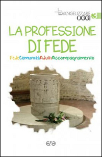 La professione di fede è una riscoperta personale e profonda dei doni ricevuti nei sacramenti. Perché i doni che il Signore Gesù ci dà sono per sempre, ma non sempre noi siamo capaci di coglierne la ricchezza. Allora, ciascuno è chiamato a vivere la propria fede come membro della comunità, mettendo Gesù al centro della propria vita e del proprio futuro. Il progetto "Evangelizzare oggi" è dedicato a educatori, catechisti e operatori pastorali, e questo terzo volumetto affronta il processo fondamentale della professione di fede. Nell'uscita da sé (fede), si entra in una prospettiva relazionale (comunità) che il noi continuamente rigenera (adulti) vivendo e operando nella prospettiva del prendersi cura (accompagnamento). I testi sono di Gianfranco Calabrese, Pierpaolo Triani e Veronica Donatello. Ciascun volumetto, curato da Valentino Bulgarelli e Dino Pirri, è scritto a partire dall'esperienza diretta ed è rivolto a parroci, catechisti e operatori pastorali come supporto semplice e molto fruibile nel lavoro di evangelizzazione e catechesi.