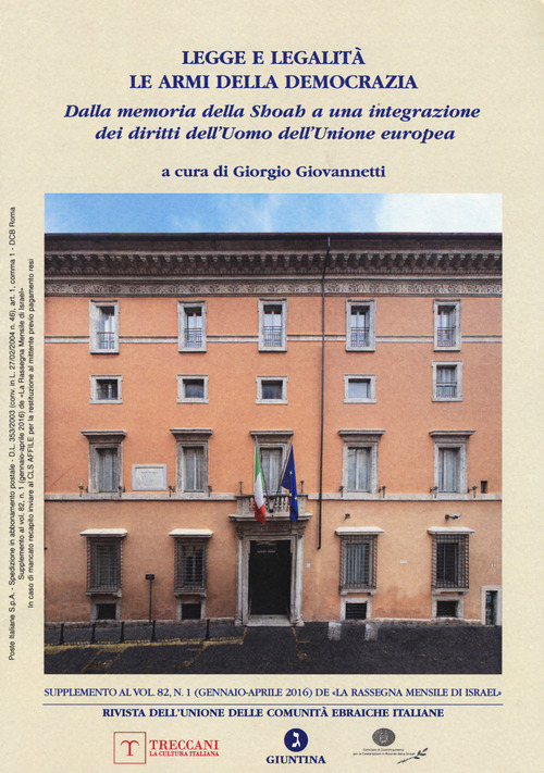 «La Rassegna Mensile di Israel», fondata da Alfonso Pacifici e Dante Lattes nel 1925, è tra le più importanti sedi di dibattito culturale dell'ebraismo italiano. Gli oltre ottanta volumi, i contributi scientifici pubblicati, i numerosi libri recensiti fanno della rivista una fra le più longeve e autorevoli voci dell'ebraismo europeo, interrotta solo dalle leggi antiebraiche del fascismo e dai successivi eventi bellici. Questo supplemento raccoglie gli atti del convegno «Legge e legalità. Le armi della democrazia. Dalla memoria della Shoah a una integrazione dei diritti dell'Uomo dell'Unione europea», organizzato dall'Unione delle Comunità Ebraiche Italiane (UCEI) e dalla Presidenza del Consiglio, in occasione della Giornata della Memoria 2017. La manifestazione si è svolta a Roma, presso la sede dell'Istituto della Enciclopedia Italiana, il 26 gennaio. A coordinarla è stato Giorgio Giovannetti che ne ha curato anche la pubblicazione. Hanno partecipato, nell'ordine, Massimo Bray, Anna Nardini, Oreste Bisazza Terracini, Shaul Ladany, Valerio Di Porto, Marta Cartabia, Francesco Alicino, Luisa Azzena e Haim Baharier. Il volume si conclude con un Appello ai Capi di Stato e di Governo dell'Unione europea.