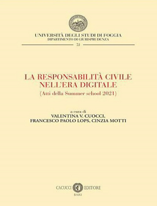 Il volume raccoglie gli Atti della Summer school "La responsabilità civile nell'era digitale" promossa dal Dottorato di ricerca in Scienze giuridiche, in convenzione fra le Università di Siena e di Foggia nell'ambito del Progetto speciale Alta formazione "Ca' Foscari", in collaborazione con l'Unità locale di Foggia del PRIN 2017, Progetto di ricerca di Rilevante Interesse Nazionale: "Artificial Intelligence and Legal Studies Perspectives. Are the Algorithmic decision-making and data driven predictions calling for a new legal framework? A focus on financial and labour markets highlighting protection of rights and wealth distribution", Prot. 2017L9HJ25_001, CUP I84I19001180008. La Summer school, istituita dall'Università di Foggia - Dipartimento di Giurisprudenza, si è svolta a Vieste dal 6 al 10 settembre 2021, con la partecipazione di 30 relatori e di 87 iscritti, in presenza e da remoto tramite la piattaforma Elearning Unifg.