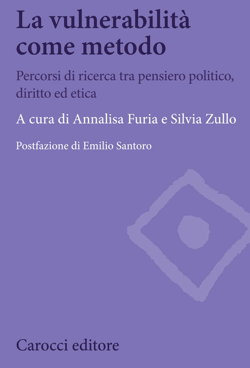 Che cosa significa riposizionare la vulnerabilità al centro del pensiero politico, giuridico e bioetico occidentale? Quali ricadute ne derivano in termini teorico-concettuali, ad esempio in relazione ai concetti di sicurezza e di autonomia? Quali sono le conseguenze in termini di presa in carico dei soggetti vulnerabili, in particolare in ambito migratorio e nelle relazioni di cura? Attraverso un'indagine interdisciplinare, articolata in una parte teorico-dottrinale e in una empirica, il volume prende in esame i concetti, le norme e le pratiche interessate dal potenziale trasformativo della vulnerabilità, nonché i rischi e i limiti connessi all'impiego di tale prospettiva, con lo scopo di favorire lo sviluppo di percorsi di ricerca tesi a definire il portato della vulnerabilità come metodo, tanto in senso critico e decostruttivo, quanto in senso normativo e propositivo.