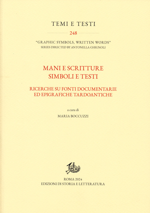 I saggi raccolti in questo volume costituiscono l'esito dei diversi percorsi di ricerca intrapresi dalle studiose che hanno collaborato alle attività del progetto ERC-AdG-NOTAE (NOT A writtEn word but graphic symbols). Il lavoro di studio e descrizione di un numero ingente di fonti scritte di natura pratica, risalenti alla tarda antichità greco-latina e all'alto medioevo occidentale, ha sollecitato una serie di interrogativi di ricerca intorno alle mani dei vari scriventi in esse intervenute (o non), alle soluzioni adottate in ordine alle scritture, al tipo e al valore dei simboli grafici occorrenti nella trama dello scritto, alle forme di presentazione e organizzazione dei testi. Facendo leva sul rapporto di forte interrelazione esistente tra la forma del documento, le funzioni che lo scritto è chiamato ad assolvere e il contesto dal quale una testimonianza promana, i singoli casi di studio presentati si propongono di rischiarare le ragioni storico-sociali profonde alla base di certe scelte formali, con particolare riferimento a: impostazione di documenti dell'Egitto romano, configurazione di sottoscrizioni documentarie greco-latine, pratiche abbreviative di papiri documentari greci, layout di fonti epigrafiche greche in prosa.