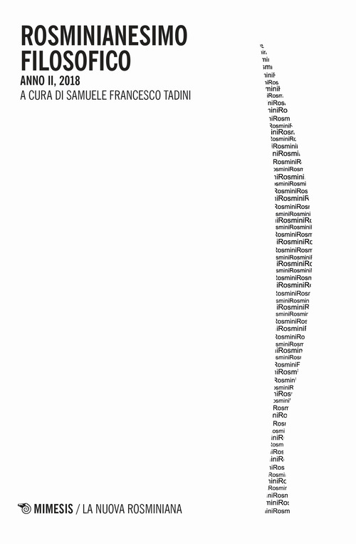 «Rosminianesimo filosofico» costituisce un autentico osservatorio di natura storico-teoretica, grazie al quale vengono mappate tutte le interpretazioni che nel corso del tempo sono state date del pensiero rosminiano. «Rosminianesimo filosofico», inoltre, pone in dialogo teoretico Rosmini con i più diversi pensatori di ogni tempo, ubbidendo a criteri ermeneutici di analisi critica, miranti a verificare, di volta in volta, il valore imprescindibile degli asserti di ciascun filosofo nel contesto specifico del loro porsi. In tal senso il background di ciascun pensatore e l'area tematica di appartenenza divengono, nel loro insieme, un luogo privilegiato e imprescindibile di osservazione. I contributi presenti nel volume sono suddivisi in tre sezioni, dedicate rispettivamente alla storia del rosminianesimo fIlosofico, al confronto del pensiero rosminiano con i pensatori d'ogni tempo, e alle recensioni inerenti i volumi di area rosminiana, i quali, nel corso del tempo, hanno contribuito a generare filoni teoretici diversificati alla luce di un comune riferimento alla teoresi rosminiana. Il volume di quest'anno raccoglie, in apposita appendice, anche i contributi del "Cenacolo rosminiano", organizzato dal Rosmini Institute presso il Sacro Monte Calvario di Domodossola il 18 e il 19 novembre 2017, intitolato "Consenso o conflitto? La società civile nel pensiero di Antonio Rosmini".