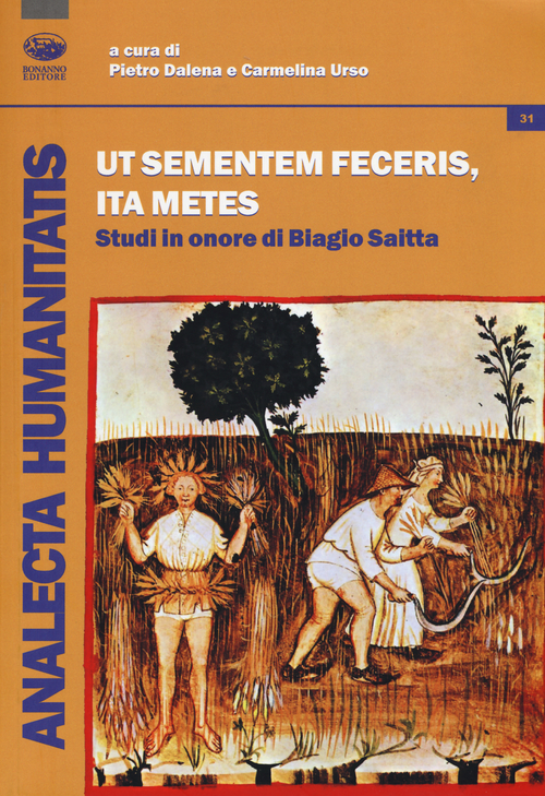 Il volume in onore di Biagio Saitta, già professore ordinario di Storia medievale presso il Dipartimento di Scienze Umanistiche dell'Università di Catania, rappresenta, così come lascia trapelare il titolo, "Ut sementem feceris, ita metes", il generoso "dono" dei tanti studiosi che hanno voluto così omaggiare il collega, l'amico e il maestro. Ai saggi prodotti dai cultori dei secoli dell'età medievale, si sono aggiunti quelli degli storici dell'antichità e della modernità, della filosofia antica così come del cristianesimo antico e moderno. Gli studi sono stati organizzati in cinque sezioni (Protagonisti del Medioevo; Dinamiche religiose tra Medioevo e età moderna; Economia e territorio; Potere e società; Aspetti culturali e sociali) così da dare organicità ad un volume corposissimo, che, corredato da una Nota biografica, da una Bibliografia degli scritti di Biagio Saitta e da un Indice dei nomi, si presenta come un originale contributo agli studi umanistici nelle più variegate declinazioni.