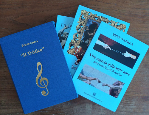 Prezioso "Trittico" in cofanetto artistico costituito dalla trilogia di libri di Bruno Aprea che rappresentano le sue "Prime Opere Letterarie" in cui è narrato il connubio tra musica e filosofia attraverso l'esperienza esistenziale dell'Autore, affermato Maestro d'Orchestra a livello internazionale.