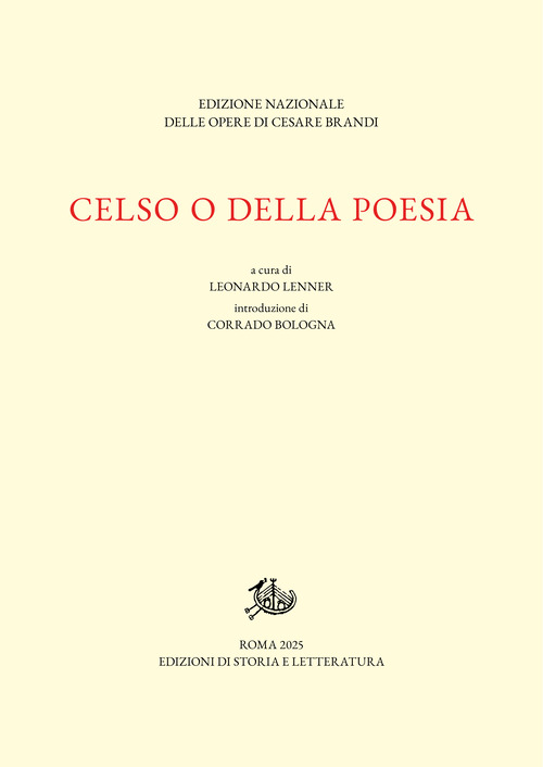 Nel 2025 prende avvio l'Edizione Nazionale delle Opere di Cesare Brandi, uno dei più influenti teorici del restauro e dell'estetica del XX secolo. Questi volumi, attraverso un'accurata introduzione critica, mirano a offrire una rilettura contemporanea delle riflessioni di brandi, contribuendo alla valorizzazione e diffusione del suo pensiero, essenziale per comprendere la teoria dell'arte e del restauro. Pubblicato nel 1957, il Celso è il dialogo che Cesare Brandi dedica alla poesia. Portavoce dell'autore è sempre il personaggio di Eftimio che, estendendo all'arte della parola la sua riflessione estetica, invita gli interlocutori a concentrarsi in primo luogo sulla natura dell'immagine, «tentando la scalata proprio dalla parete più impervia della rocca della poesia». Respinta l'identificazione di linguaggio e arte, la parola è intesa come testimonianza di uno schema preconcettuale, da un lato proteso verso la sua destinazione conoscitiva, dall'altro legato all'immagine da cui proviene e di cui la poesia dovrà suscitare le potenzialità alla coscienza. A partire da questa tesi, la discussione si sviluppa affrontando alcune questioni fondamentali, come il ruolo della metafora, i generi, l'uso del dialetto, la metrica, il ritmo.