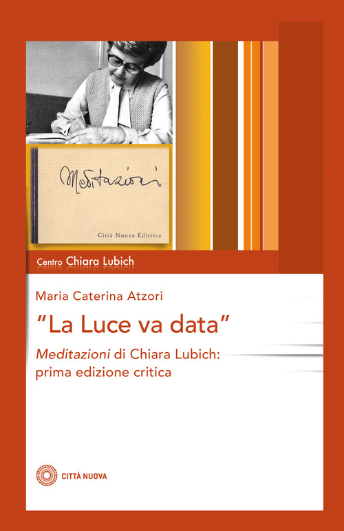 "La Luce va data", sollecitazione tratta da uno dei 58 scritti che compongono il primo libro di Chiara Lubich Meditazioni (Città Nuova, Roma 1959, 202029), esprime felicemente anche il senso che l'Autrice attribuisce alla scrittura e spinge ad una approfondita riflessione sul ruolo svolto dai suoi scritti nella trasmissione del Carisma dell'unità di cui ella è portatrice. L'avventura di Meditazioni, su cui indaga la presente edizione critica, viene qui narrata attraverso un dinamico percorso che ci fa risalire alle origini di ogni singolo scritto lasciandoci intravedere poi le sue fasi evolutive, tra varianti testuali, espunzioni di testo e successivi reinserimenti, in vivace interazione con il contesto storico-culturale che fa da sfondo ad ognuna delle sue 29 edizioni in lingua italiana.