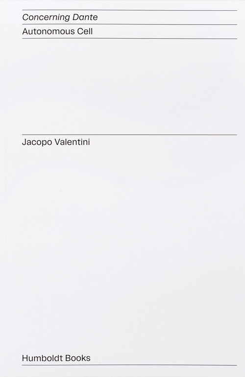 La portata culturale della Commedia di Dante nei secoli ha travalicato una sfera prettamente letteraria arrivando a influenzare vari aspetti della società anche grazie a una vasta tradizione di trasposizioni visive. "Concerning Dante. Autonomous Cell" è un meta-progetto sul rapporto tra testo letterario e paesaggio e sulla forza evocativa della Divina Commedia che nei secoli ha modellato la percezione dei luoghi fino a connotarli come 'danteschi'. Jacopo Valentini ha indagato una serie di luoghi del Belpaese citati dal Sommo Poeta e, mettendoli in relazione con altri paesaggi e nature morte dotate del medesimo climax visivo, ha creato le analogie per una geografia dantesca. La narrazione visiva costruita da Valentini si snoda attorno a tre luoghi simbolici e a tre celebri illustrazioni del testo dantesco, intrecciando i Campi Flegrei, la Pietra di Bismantova e il Delta del Po - interpretati come i varchi che conducono a Inferno, Purgatorio e Paradiso - alle figurazioni di Federico Zuccari, Alberto Martini e Robert Rauschenberg.