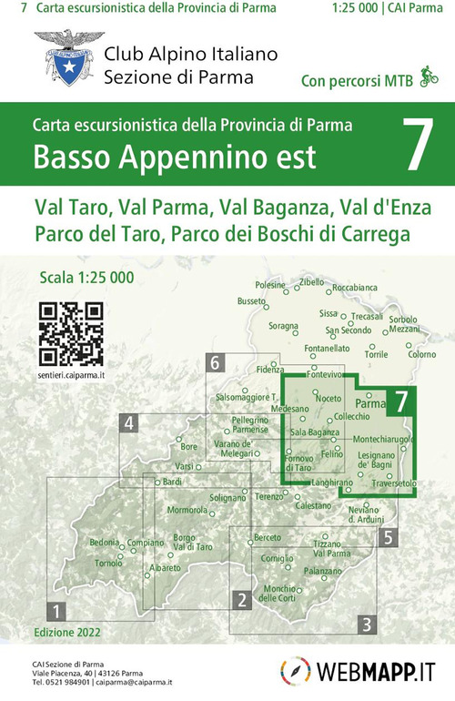 Cartina escursionistica con percorsi MTB in scala 25.000 del territorio compreso nelle valli indicate nel titolo. In dettaglio contiene: la rete stradale, l'idrografia, le località, i monti, la rete dei sentieri numerati, secondo le regole CAI, e i sentieri storici (es. Via Francigena) ed a tappe (es. Sentiero Italia CAI) presenti sul territorio indicato. E' la quinta della serie di 7 cartine fronte retro a colori che verranno prodotte nel 2022.