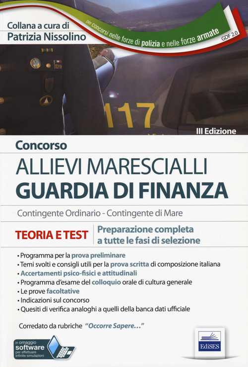 Il volume è indirizzato ai partecipanti al concorso per l'ammissione alla Scuola Ispettori e Sovrintendenti per la formazione dei Marescialli. Il testo è articolato in Parti: Parte I - Il Maresciallo della Guardia di Finanza, ruoli, compiti, prospettive di carriera; come si svolge il concorso, consigli per la tutela all'inidoneità. Parte II - Tutto il programma per la preparazione alla prova preliminare consistente in domande dirette ad accertare le abilità linguistiche, ortogrammaticali e sintattiche della lingua italiana. Parte III - Consigli su come impostare e sviluppare un elaborato di italiano, elenco delle tracce assegnate nei concorsi precedenti, tracce sviluppate di storia, attualità e cultura generale. Parte IV - Indicazioni sugli accertamenti psico-fisici e spiegazione dei principali test psico-attitudinali. Parte V - Sviluppo del programma d'esame del colloquio orale: Storia ed Educazione Civica, Geografia e Matematica (aritmetica, algebra e geometria). Di particolare utilità, le rubriche "Occorre Sapere" evidenziano gli argomenti più frequentemente oggetto di domanda. Inoltre, è disponibile una vasta raccolta di quesiti a risposta multipla.