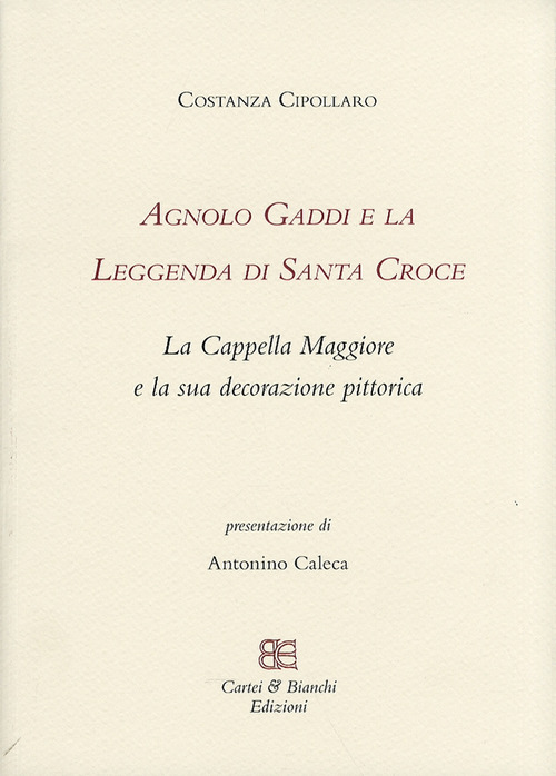 L'occasione di poter esaminare a distanza ravvicinata il ciclo pittorico della Cappella Maggiore di Santa Croce di Firenze, nel corso del suo complesso restauro, ha permesso di riconsiderare i complessi problemi che riguardano un monumento tanto illustre della Firenze del secondo Trecento, primo esempio monumentale che narra tutte le tre parti della leggenda della Vera Croce. L'autrice ha analizzato le singole parti coinvolte nell'esecuzione del ciclo murale realizzato in Santa Croce nel corso del nono decennio del Trecento: il finanziamento dei benefattori Alberti del Giudice, l'esecuzione materiale di Agnolo Gaddi, quale capo di un'esperta bottega pittorica, e soprattutto la volontà dei francescani del convento fiorentino, con ogni verosimiglianza responsabili dell'iconografia degli affreschi. Tra i molti aspetti affrontati in questo lavoro, meritano di essere ricordati la precisa analisi delle condizioni di conservazione degli affreschi, la puntuale ricognizione delle iconografie, la delineazione della storia edilizia della parte di monumento rivestita da questo ciclo pittorico, un'ampia ricognizione dei precedenti cicli italiani illustranti la leggenda della vera croce, e le relazioni tra questa opera di Agnolo e alcuni cicli successivi.