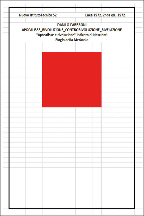 A distanza quasi di mezzo secolo dall'apparire di quel testo seminale che è Apocalisse e rivoluzione co-firmato da Giorgio Cesarano e Gianni Collu l'autore di "Apocalisse. Rivoluzione. Controrivoluzione. Rivelazione. "Apocalisse e rivoluzione" indicato ai Nescienti. Elogio della Metànoia", passa minuziosamente al setaccio le tesi di questo lavoro per sfrondarle, da una parte, dal vischioso e lugubre abbraccio di cui sono state fatte oggetto, maniacalmente, da parte di sopravvissuti zombie della sinistra leftista, sorta di neo-giapponesi (a guerra finita) arroccati sull'Isola che non c'è, temendo ancora oggi una Borghesia che sparì oramai da tempo da ogni orizzonte e dall'altra lumeggia ciò che ancora ed è molto davvero, resta ficcante di quell'incredibile lavoro di quel duo. Il testo inoltre ha il non trascurabile vantaggio di essere breve, entro certi termini, nonché di spianare certi passaggi del libro originario che aventi carattere quasi oracolare erano di impervia comprensione. Pubblicato dalle Edizioni ENEA.