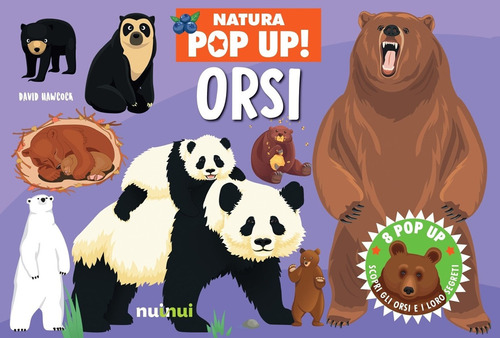 Una serie di libri dedicati alla natura e agli animali accompagna i più piccoli a scoprire tanti ambienti diversi in modo divertente e stimolante. Questo libro racconta i molteplici habitat e le curiose abitudini degli orsi. Gli 8 incredibili scenari pop up presentano svariate specie di questi voluminosi (ma anche piccoli, con solo 70 cm di altezza) mammiferi, i loro colori e la loro provenienza. L'effetto tridimensionale degli straordinari pop up insieme al formato orizzontale rendono questa lettura un piacere visivo, mentre i testi che forniscono interessanti nozioni stimolano la curiosità dei giovani lettori. Età di lettura: da 3 anni.