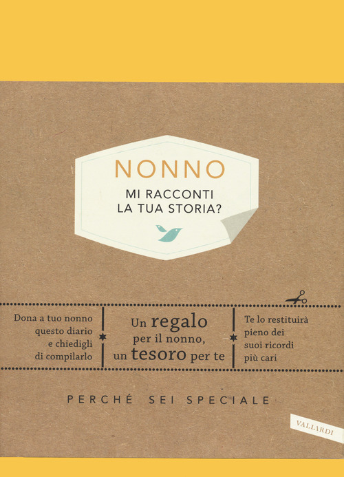Con questo libro farai a tuo nonno un regalo davvero speciale, ricco di spunti e domande divertenti, evocative e inaspettate: rispondendo con i suoi ricordi, lui trasformerà queste pagine in un racconto unico e personale. Dopo averlo compilato e impreziosito con foto e altre memorie, tuo nonno te lo restituirà. Così avrai un suo ricordo che ti resterà per sempre.