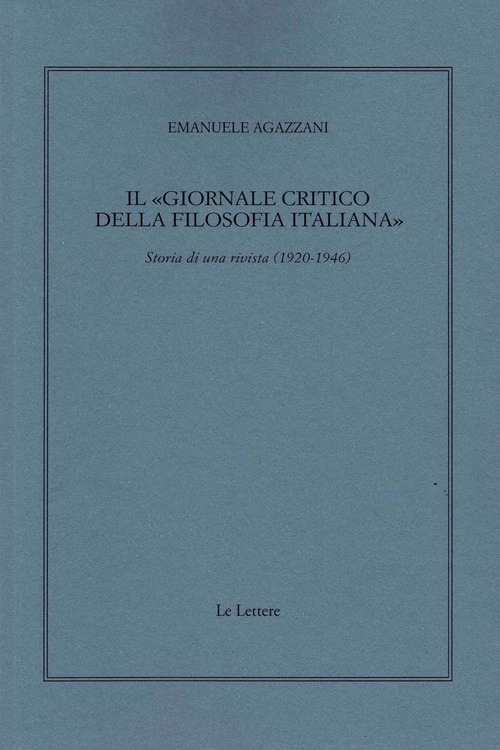 Il «Giornale critico della filosofia italiana» è la rivista di filosofia fondata da Giovanni Gentile nel 1920 e diretta fino al numero triennale 1944-1946, uscito dopo la tragica uccisione del filosofo. Essa costituisce un autentico patrimonio della nostra cultura nazionale. In questo volume viene ricostruita una storia delle prime due 'serie' della rivista (1920-1946) attraverso un lavoro storiografico che tiene insieme questioni teorico-filosofiche e vicende politico-culturali, restituendo uno spaccato del Novecento filosofico italiano esaminato attraverso lo sguardo peculiare del «Giornale critico». Il volume si compone di due parti. La prima è dedicata alla ricostruzione della genesi ideale e materiale del «Giornale critico» e ricostruisce quelle tappe fondamentali tratte dalla biografia intellettuale di Gentile che lo portarono alla decisione di fondare la sua personale rivista. Nella seconda parte viene svolta una storia filosofica della rivista atta a determinare alcuni importanti filoni tematici - non certo gli unici che era possibile individuare, perché svolgere la storia di una rivista, fonte e miniera inesauribile di temi e spunti di analisi, è un lavoro che si espone sempre a nuovi sviluppi e ulteriori approfondimenti - che hanno attraversato e contraddistinto il venticinquennio della direzione Gentile: l'itinerario intellettuale e filosofico del direttore; la crisi interna al fronte dell'idealismo attuale attraverso le figure di Armando Carlini, Ugo Spirito e Guido Calogero; il complesso rapporto di Gentile e il «Giornale critico» con il pensiero e l'opera di Benedetto Croce e la sua rivista «La Critica».