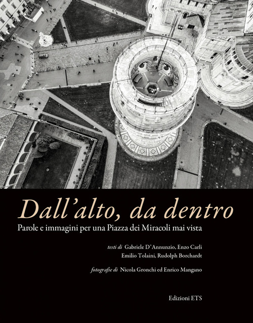 Un inedito - se si considera il carattere di novità delle inquadrature proposte - viaggio in uno dei paesaggi più fotografati del mondo secondo un'inusuale prospettiva che guarda alla Cattedrale, al Campanile, al Battistero, al Camposanto e alla Piazza nel suo insieme con il medesimo sguardo delle innumerevoli statue che popolano il fastigio dei vari monumenti e che svela caratteri e particolari finora solo immaginati. In questo volume la fotografia dialoga con quattro grandi e illustri interpreti e osservatori della Piazza dei Miracoli - Gabriele D'Annunzio, Enzo Carli, Rudolf Borchardt, Emilio Tolaini - componendo un gioco di specchi nel quale immagini e parole si alternano e si contrappuntano a vicenda.