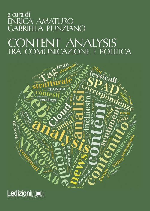 Nel panorama attuale della società della comunicazione e del web 2.0, dove ci sono una quantità di dati immediatamente disponibili, stiamo assistendo ad una riscoperta delle tecniche di analisi del contenuto, tra ambiti disciplinari molto diversi fra loro. Semiotica, scienze politiche, linguistica computazionale, statistica testuale, psicologia, sociologia della comunicazione hanno battuto strade differenti, eppure accomunate dalla volontà di sviluppare sofisticati sistemi di analisi automatizzata, software e algoritmi che consentano di recuperare, archiviare e analizzare i contenuti più disparati. Il testo, che vuole avere fini didattici, si propone di mettere ordine fra i diversi tipi di analisi del contenuto, fornire una lettura critica delle tecniche classiche e più innovative, con il fine di offrire gli strumenti per una necessaria sistematizzazione teorica.