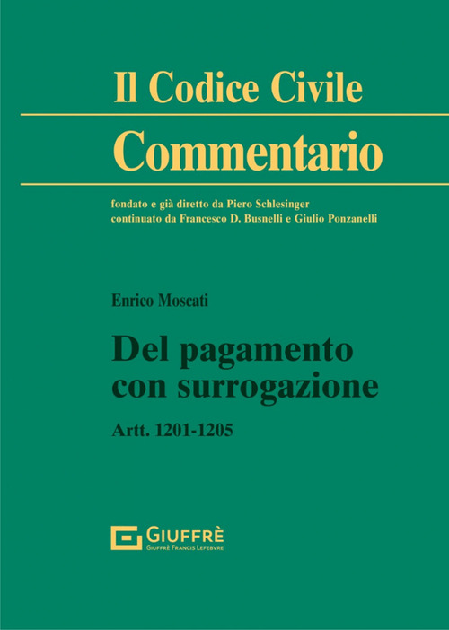 A distanza di oltre un trentennio dall'ultimo contributo sistematico viene pubblicato ora questo volume del Commentario del codice civile che vuole essere un riesame spassionato e completo delle innumerevoli problematiche teoriche e pratiche di un istituto tanto complesso quanto sfuggente quale è da sempre "il pagamento con surrogazione". Nell'introduzione (pagg. 1-109) vi è l'inquadramento dogmatico degli artt. 1201-1205 c.c. nel più ampio contesto delle vicende soggettive del diritto di credito e alla luce dell'incidenza del pagamento del terzo sulla stessa struttura del rapporto obbligatorio. Nel commento delle singole norme (pagg. 111-312) si è tenuto conto senza preconcetti dei più significativi contributi dottrinali e giurisprudenziali al fine di offrire una soluzione non estemporanea ai più controversi problemi ai quali dà luogo l'attuale disciplina dell'istituto, considerando anche la legislazione di settore (ad es., la legge sulla portabilità dei mutui). Il volume è corredato da ampi indici: bibliografico, degli autori, delle fonti normative e analitico.