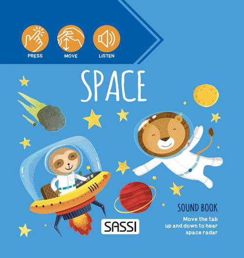Leggi le avventure dei simpatici animali nello Spazio, premi i pulsanti e impara a riconoscere i loro versi. Muovi su e giù la maniglia: sentirai il suono di un radar spaziale che ti accompagnerà durante la lettura! Un libro sonoro per imparare ad associare le immagini ai suoni e stimolare l'apprendimento. Età di lettura: da 1 anno.