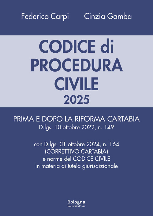 Codice di procedura civile 2025. Prima e dopo la riforma Cartabia. Con d.lgs. 31 ottobre 2024 (correttivo Cartabia) e norme del codice civile in materia di tutela giurisdizionale