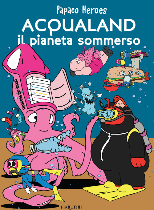 Nello spazio infinito, un'astronave sfreccia veloce tra le galassie alla scoperta di pianeti sconosciuti e alieni bizzarri... è l'astronave dei Papaco Heroes ! Pacifisti, ecologisti, innamorati della vita, curiosi viaggiatori alla ricerca di universi paralleli, navigano nel cosmo insieme al loro capitano, il Fantasmino Whity. Whity Ghost trova per caso una misteriosa mappa del tesoro... Seguendola, i Papaco Heroes arrivano nel bizzarro pianeta sottomarino di Acqualand, dove affronteranno foreste di alghe carnivore, banchi di Piranha di Plastica e, come se non bastasse, un temibile gruppo di Garbage Monsters. Età di lettura: da 6 anni.
