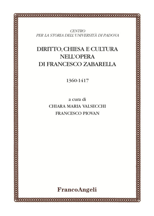 Il volume ricostruisce, con contributi nuovi e storiograficamente rilevanti, la figura poliedrica del cardinale Francesco Zabarella, canonista tra i maggiori del Quattrocento e docente universitario di fama europea, diplomatico di vaglia, che diede un contributo decisivo - dottrinale e politico - al superamento del Grande Scisma d'Occidente, tanto che alcuni preconizzavano la sua elezione al Pontificato. «Oggi è morto il papa!». Con queste parole si dice che Sigismondo del Lussemburgo, re dei Romani, abbia accolto la notizia della scomparsa, sopraggiunta a Costanza il 26 settembre 1417, del cardinale Francesco Zabarella. Canonista tra i maggiori della sua età e docente universitario di fama europea, uomo di Chiesa (canonico e arciprete di Padova, vescovo di Firenze, cardinale dal 1411), diplomatico di vaglia, Zabarella diede un contributo decisivo - dottrinale e politico - al superamento del Grande Scisma d'Occidente, che da un quarantennio lacerava la Chiesa e la società europea, tanto che alcuni - fra i quali, lo si è visto, Sigismondo - preconizzavano sarebbe uscito con la tiara dal conclave che stava per essere convocato. Fu anche uomo di ampi interessi culturali, legato alla memoria - vivissima a Padova - del magistero petrarchesco e in rapporti stretti con umanisti come Coluccio Salutati e Pier Paolo Vergerio il Vecchio. A tutti questi aspetti di una personalità poliedrica e per più versi eccezionale i saggi raccolti in questo volume apportano contributi nuovi e storiograficamente rilevanti.