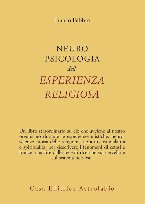 Il libro, che indaga sulle basi neuropsicologiche del misticismo, ha il pregio unico di presentare, in modo comprensibile a tutti, dati perfettamente aggiornati alle più recenti ricerche scientifiche. Ma cos'è la neuropsicologia e cosa ha a che fare con la religione? La neuropsicologia studia tutti i fenomeni psichici dell'uomo a livello del sistema nervoso, descrivendo quindi in modo molto approfondito le connessioni tra corpo e psiche. La storia evolutiva del cervello e i meccanismi neurochimici che sottendono le emozioni, i sentimenti e i diversi stati di coscienza (veglia, sonno, sogno e trance) sono tra gli argomenti trattati in questo volume. E da circa dieci anni che l'autore, nell'ambito di tale disciplina, ha concentrato la sua attenzione sulla sfera del sacro e in particolare sui fenomeni di estasi e beatitudine su cui si imperniano le tradizioni spirituali, esaminando con rigore metodologico alcune delle principali ipotesi per spiegare l'esistenza, negli esseri umani, di circuiti cerebrali coinvolti nell'esperienza religiosa.
