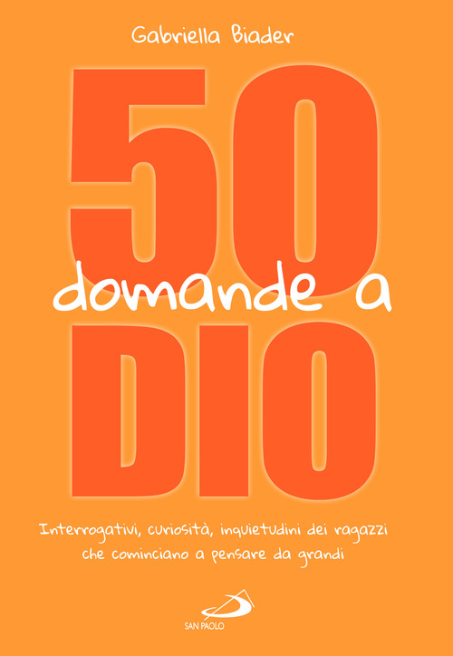 Quanti problemi nasconde il cuore degli adolescenti: in questo tempo che sembra distratto ma è disperatamente assetato di valori e di autenticità, essi amano discuterne in gruppo, o a scuola, e confrontarsi tra amici, partendo per lo più da postulati infantili, acritici e insufficienti a maturare convinzioni "da grandi". Queste Cinquanta domande a Dio, formulate da ragazzi e ragazze (12-15 anni) - se c'è differenza tra amore e amicizia, se si può leggere il futuro, se Dio può perdonare anche Giuda, se è peccato baciarsi, se esiste davvero l'inferno... - vogliono provocare risposte "aperte" offrendo ai giovani lettori motivi di confronto e di verifica tra citazioni d'autori antichi e moderni credenti e non credenti, rapidi appunti e idee?sprint da diario, "flash" e intuizioni di colorita fantasia adolescenziale, e persino "autorevoli pareri" che scendono ...dal cielo. Un originale sussidio per crescere nella maturità cristiana del dopo?cresima, interpretando "da grandi" il catechismo Vi ho chiamato amici.