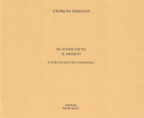 Questo testo - per la prima volta pubblicato in Italia -, pronunciato a Montreux nel 1962, racconta il desiderio d'essere altro. Georges Simenon amava la medicina. Tavole anatomiche hanno accompagnato la sua giovinezza, i suoi giochi; in tutti i paesi in cui ha vissuto i medici sono stati i suoi amici migliori. Non lo è mai stato, ma quanto la sua arte di romanziere si accosti e sovrapponga a quest'altra, è qui dimostrato con perizia scientifica, una indagine felicemente risolta, ce ne fosse bisogno.