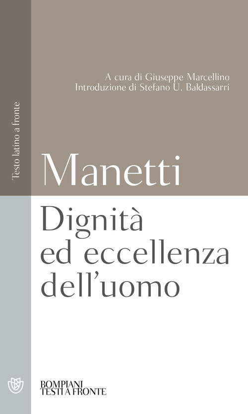 Il più rilevante e noto trattato rinascimentale sulle qualità morali, fisiche e divine dell'uomo fu redatto da uno fra i più poliedrici e dotti umanisti del Quattrocento. Il "De dignitate et excellentia hominis" è l'opera capitale di Giannozzo Manetti (Firenze, 1396 - Napoli, 1459), ricco mercante, politico, autore di numerosi scritti in latino, e traduttore di Aristotele dal greco e dei Salmi dall'ebraico. Fu per un ventennio ambasciatore della repubblica fiorentina, quindi segretario pontificio e, infine, cortigiano presso la corte dei re d'Aragona a Napoli. Proprio su committenza di Alfonso il Magnanimo, Manetti portò a compimento nel 1452 la sua summa enciclopedica di quanto scritto dagli autori classici e cristiani sul miracolo del corpo umano e dello spirito divino che vi alberga. L'opera rappresenta un imperituro monumento alla più perfetta tra le creature divine, posta al centro delle meravigliose bellezze dell'Universo e dotata di un corpo e di un'anima che sono riflesso del macrocosmo. L'esaltazione dei prodotti dell'ingegno umano e delle arti figurative, la contestazione della tradizionale posizione medievale che individuava nella morte l'unica via d'uscita dalle sofferenze terrene, la glorificazione delle virtù e delle prerogative dell'uomo, e soprattutto la riflessione sui privilegi e gli oneri della "dignitas hominis" fanno di questo scritto il manifesto del Rinascimento italiano. Il volume offre una traduzione integrale dell'opera a cura di Giuseppe Marcellino, specialista della letteratura latina umanistica, preceduta da un saggio introduttivo di Stefano U. Baldassarri, Direttore dell'ISI Florence e studioso del Rinascimento di fama internazionale.