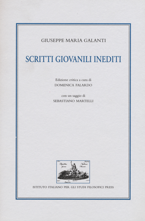 In edizione critica, per le cure attente di Domenica Falardo e con un ampio saggio introduttivo di Sebastiano Martelli, vedono la luce Della civile filosofia e Considerazioni politiche sopra i vantaggi e gli svantaggi del Regno di Napoli, due opere inedite considerate perdute per circa un settantennio, che Giuseppe Maria Galanti (1743-1806) scrisse nel periodo giovanile in cui frequentava le lezioni di Antonio Genovesi.