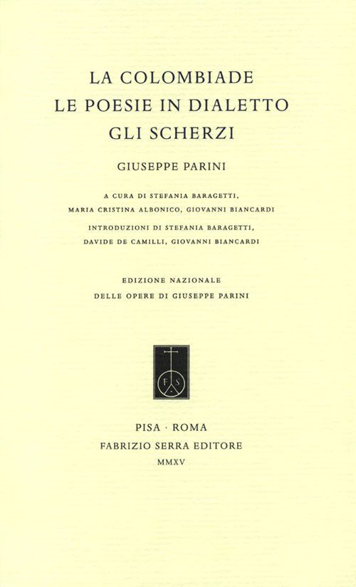 Esiste un corpo di composizioni pariniane diverse tra loro per metri e dimensioni, per toni, occasioni, collocazione e fortuna. Di esse questo volume presenta tre gruppi di versi: la traduzione del IX canto della Colombiade di Madama du Boccage, le poche liriche composte in dialetto milanese e, infine, Gli Scherzi. Le poesie in dialetto fungono da elemento di coesione, da un lato con la Colombiade per i comuni collegamenti con il contesto culturale e accademico milanese, dall'altro con Gli Scherzi per il modo di mostrare particolarità e conseguenze dei costumi del tempo, fra riso giocoso e ironia, offrendo frammenti significativi di uno spaccato che naturalmente con più ampio respiro si realizza nelle opere maggiori.